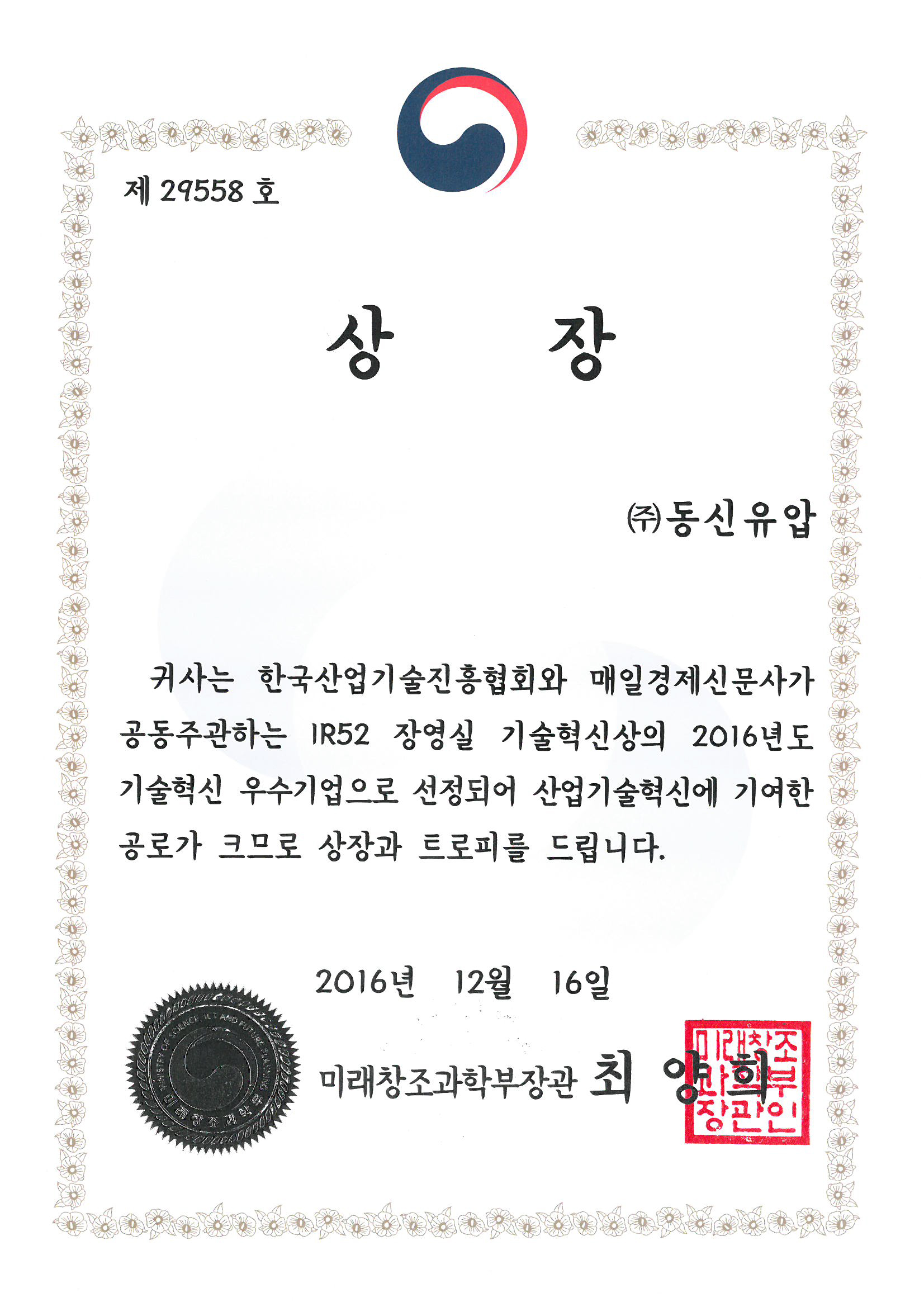 IR52 Jang Young-Sil Award for Technological Innovation